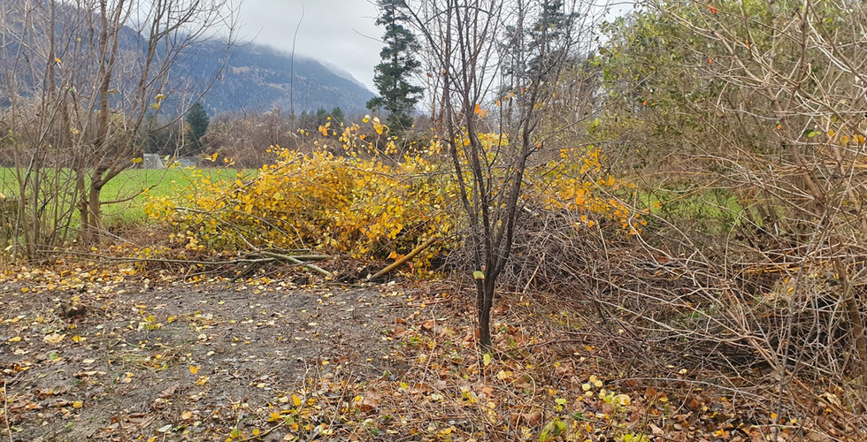 Mit Scheren, Gabeln und Rechen ausgerüstet starteten die Schülerinnen und Schüler trotz Kälte und Regen tatkräftig in den Pflegetag. Das Thema des Einsatzes: Asthaufen bauen und Benjeshecken erstellen. Dafür zeigten die lokalen Gemeindemitarbeiter den Jugendlichen, wie man einen Baum fachgerecht fällt, Äste abschneidet oder einen Asthaufen korrekt aufschichtet. Für die Erstellung einer Benjeshecke werden zwei parallele Reihen stabiler Holzpfähle in den Boden geschlagen und dazwischen Zweige und Äste aufgeschichtet. Diese bieten einigen Kleinsäugern, Amphibien und Vögeln, wie auch Mäusen, Igeln, Fröschen, aber auch Insekten, sowohl Unterschlupf, Rückzugsort, aber auch eine Futterquelle. Zusätzlich befreite die Schulklasse den Ort von Gestrüpp, um Platz und Licht für junge, nachwachsende Bäume zu machen. Dabei wurden auch verschiedene Neophyten ausgestochen und entsorgt.